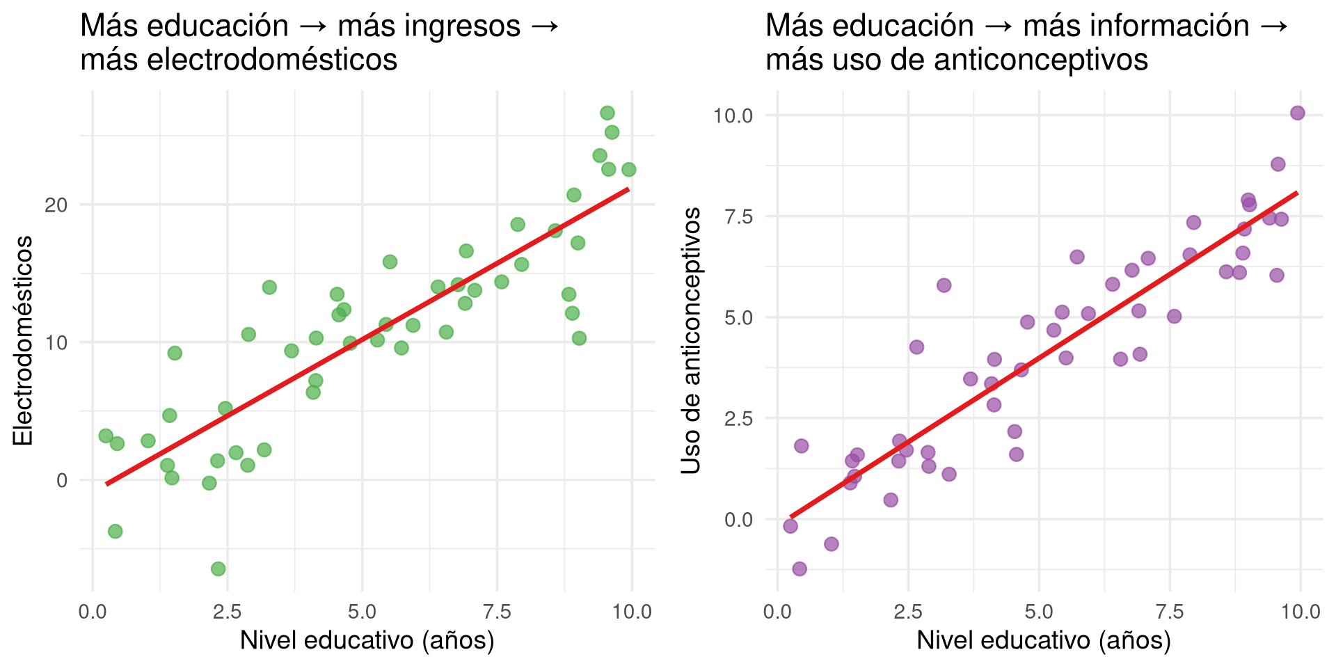 Y → X (anticonceptivos causan compra de electrodomésticos)
